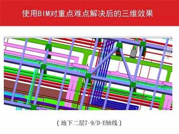 BIM突破了二维图纸的限制,直观的反应施工所要达到的效果,有效的弥补了二维图纸的不足。但是在实际施工当中,并没有达到百分百与模型契合,存在一定的不足。原因在于,一方面受交叉施工工序影响,没有完整的工作面来实现模型;一方面受其他专业变更影响,例如土建二次墙体更改会影响机电管线路由走向。这些问题往往在BIM深化中考虑的较少,这也是我们下一步拓展工作的重点。