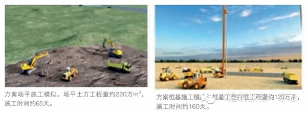 利用BIM信息模型进行场地及土方验证:通过建立场地参数化模型,实现场地可视化,利用场地参数化模型和设计初设模型进行重叠,进行土方挖填方量平衡计算,定性定量分析验证,在土地移交滞后的条件下,争取了约1个月的开工建设时间,使场平工作取得实质性进展,为后续工作的推进创造了基础条件,并降低建设成本约2 600多万元,提高了管理效益和经济效益。