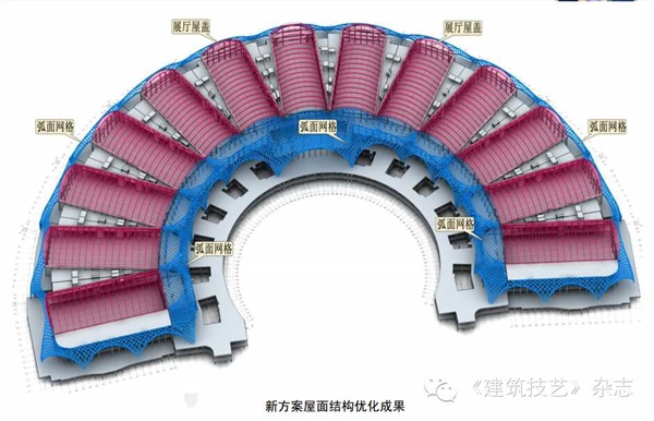 利用BIM建筑模型对建筑、结构、总图、机电、装饰等设计成果进行超前可视的模拟验证,系统地协调和优化项目的决策、品质、成本等目标。在会展项目网架方案、建筑造型、立面、排水等不匹配优化中,利用设计成果可视化,与设计单位沟通协调,使展馆平面和结构体系得到重大优化。