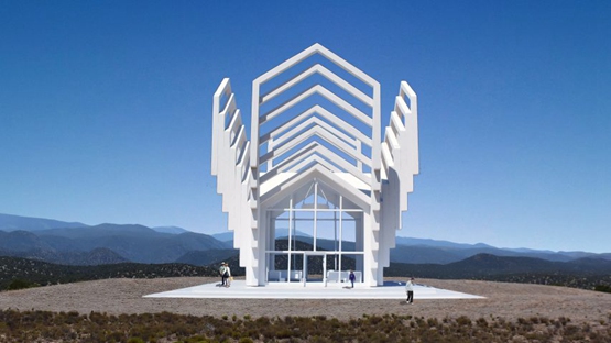 美国艺术家和设计师迈克尔-詹特森(Michael Jantzen)在新墨西哥州设想了一个“非教派”的教堂,其特征是一系列延伸到天空的“人字形”框架,以表示其对所有的人开放。