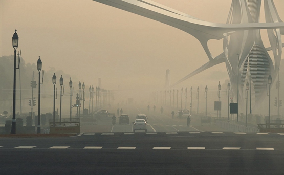 总部位于迪拜的“兹尼拉建筑工作室”(Znera)提出了一个设想,建造一个100米高的塔楼网,吸收烟雾并净化德里令人窒息的空气。