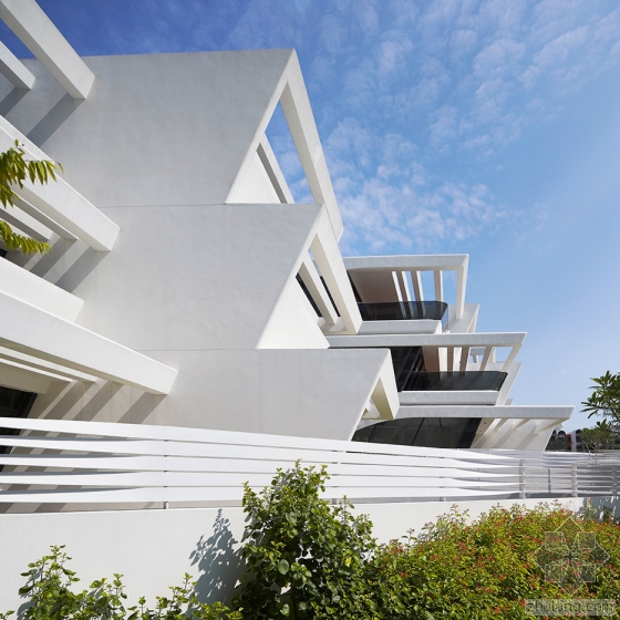 为了应对热带气候,这七座塔楼的朝向有助减少太阳直射,它们的高度相互匹配,而花瓣造型的平面创建了多种不同类型的住宅户型。每一层的每一片花瓣仅容纳一个公寓,意味着每个住宅都可以享有三个方向的视野。这使得所有起居室均对着阳台开放,同时引入自然光线到浴室和厨房。