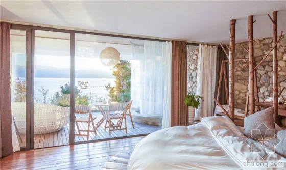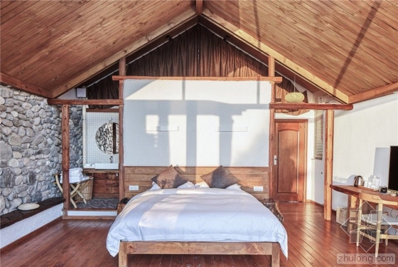 然,他们也考虑到了环保的问题,为了不向洱海排一滴污水,他们花费数十万设置了10吨级的中水处理系统,污水处理后可作为庭院景观用水,并且在酒店主入口设置了中水系统的展示窗口,传递环保设计理念。此外,设计团队也在酒店中配置了太阳能热水系统,充分利用当地气候条件。
