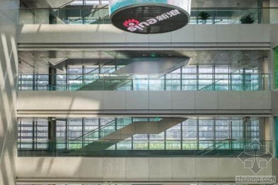 而新浪独特的“大眼”标识,更是在该设计方案中的点睛之笔,既是员工出入的乘坐电梯必经之处,又是资讯的汇集除。由一层抬头看,建筑上方的玻璃屋面下方垂吊一个9米高的柱形LED媒体屏幕,更似新浪网Logo的大眼。它能及时传送新浪网及微博上即时资讯。