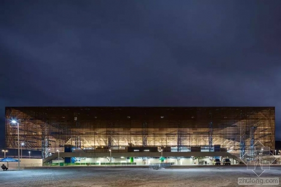 该手球场是本地建筑事务所Lopes, Santos & Ferreira Gomes与英国公司及设计机构合作的拥有12000座椅的竞技场馆。整体盒型的运动馆由“雨幕”外墙包裹,“雨幕”由水平窄木条构成,并且有若干类似邮箱投递口状的立面开口。