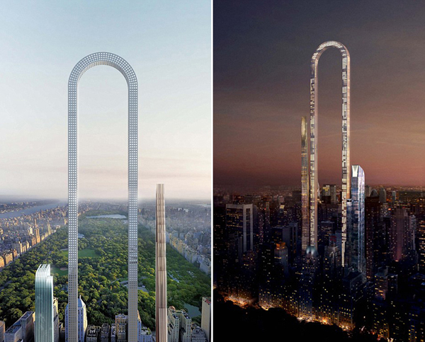 摩天大楼通常以惊人的高度吸引人们的目光,但这座U型摩天大楼造型独特,创意十足,令人对设计师的巧妙设计赞叹连连。“曼哈顿对建筑有限高要求,我们的大楼完全不用担心这一点,而且它的诞生将独树一帜!”