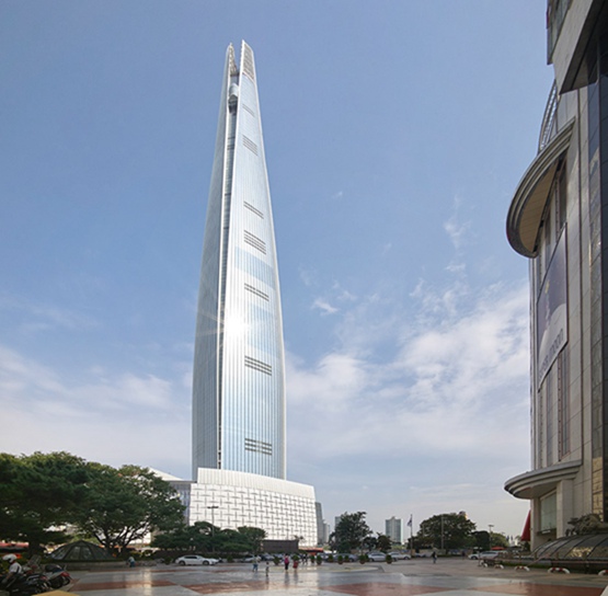“乐天世界大厦”在经过了8年的建设之后,于今年4月份投入使用。它超过了位于仁川的305米高的“东北亚贸易大厦”(Northeast Asia Trade Tower),成为朝鲜半岛的第一高楼。