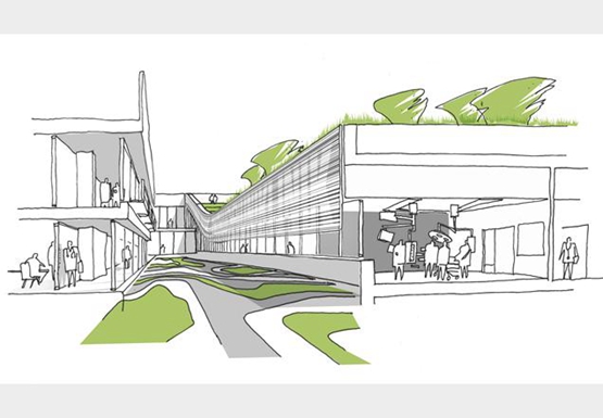 亨建筑事务所和莫勒建筑事务所的设计方案,将新建筑朝向医院新的公共入口升高。