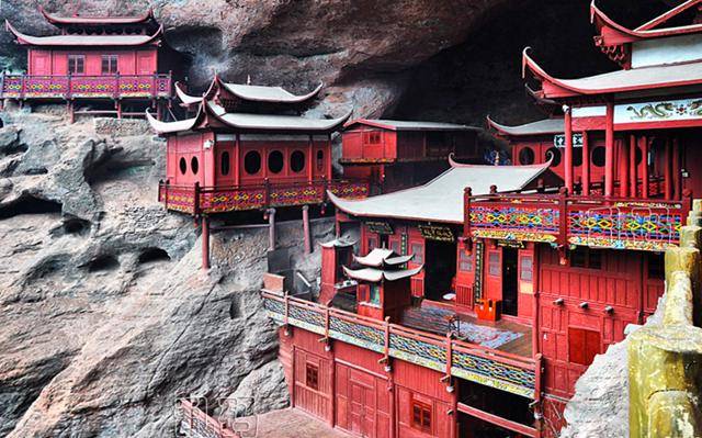 始建于宋绍兴十六年(1146年)的甘露寺位于福建泰宁金湖西岸,是北宋状元叶祖洽为还母愿而建造。该寺嵌在岩壁洞穴中,以一根木柱插地,上面建起四幢楼阁,犹如悬在山腰,是中国两个神奇的悬空寺之一,被誉为古代建筑史上的一大奇迹。