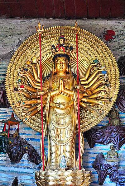 这是因为甘露寺最早是一个供奉送子观音的茅庵,当年叶祖洽为还母愿修建甘露寺时,在主阁楼安排不下观音殿,只好在大雄宝殿的如来佛祖前面供奉了一尊观音菩萨,这也是甘露寺香火特别旺盛的根本原因。