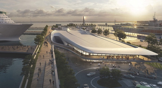 除了一个新的游船、渡轮码头和办理登船手续的区域,这个获胜的设计方案还提供了新的海滨住房和办公室,以及酒店,缆车站和高架公园。