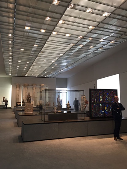这座博物馆的590英尺宽的圆屋顶,是迄今为止努维尔最受瞩目的项目的标志性建筑。它只有四个隐藏的永久性桥墩支撑,每一个相距360英尺,圆屋顶似乎漂浮在它下面的55座白色建筑之上,其中23座是画廊。