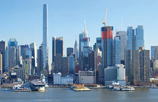这幢“超细圆筒”摩天楼将达到1312英尺(400米)高,在一个面积只有900平方米(9604平方英尺)的场地上建设,创造一个极端的高宽比。这种情况在纽约的新建项目中越来越普遍。