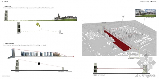 为了设计公共空间作为实体连接,在历史城市中心和现有的绿地之间将建起一座大型公园。在两个公园的交叉区域两座商业塔楼将拔地而起,这不仅代表着开塞利在土耳其的经济地位,也代表着开塞利曾作为丝绸之路沿途的商业交汇点在历史上的重要作用。