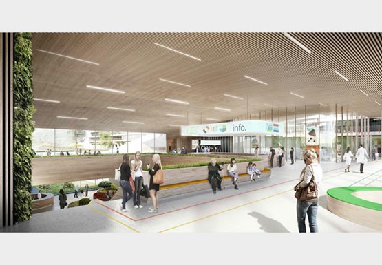 亨建筑事务所和莫勒建筑事务所的设计方案,将新建筑朝向医院新的公共入口升高。