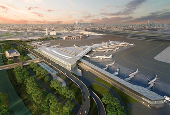 格雷姆肖建筑事务所和领导设计公司STV及承包商图尔-佩里尼-帕森斯(Tutor Perini/Parsons)合作,设计一个两层的T形建筑,它将包括一百万平方英尺的空间和33个登机门。