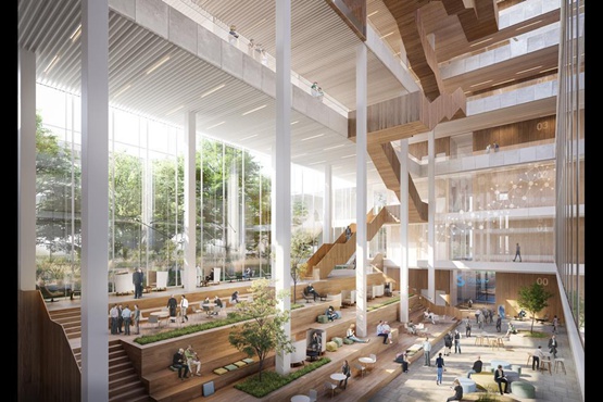 施密特-哈默-拉森建筑事务所说,非正式的工作空间,比如将中庭和宽敞的绿色庭院作为背景的大型社交阶梯,将推动工作、交流和协作的新方式。