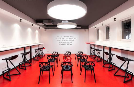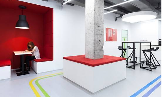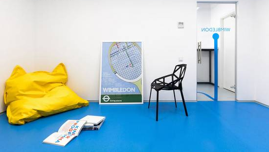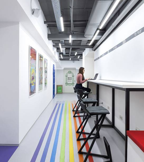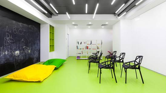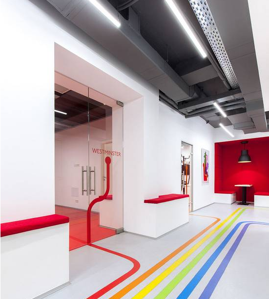设计灵感总是来源于生活,如果你认真观察,会发现很多创意而有趣的产品。设计师EmilDervish平时行走于伦敦地铁,发现那里的彩色线条标志十分引人注目,他顿时联想到了学校的设计。对于幼小的学生来说,鲜艳的色彩是最具诱惑力的。基于此,设计师EmilDervish在乌克兰基辅打造了一所Underhub语言学校,充分运用色彩明亮的线条,营造了一个如伦敦地铁般的学校。