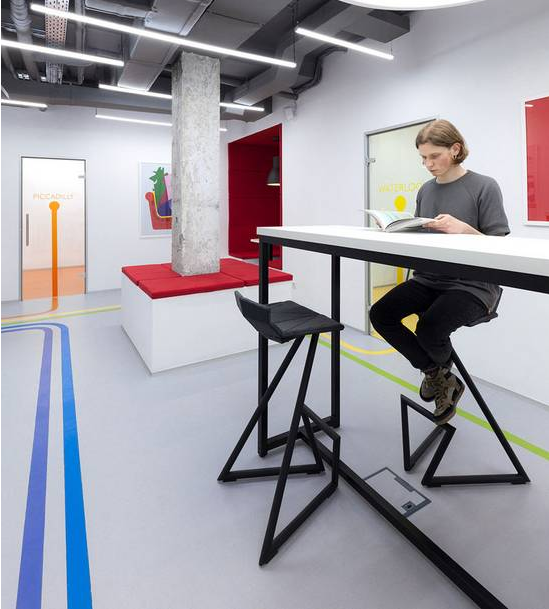 在每一个教室,都有一个定制的艺术品,它代表了这间教室的名称。当你被线条指引着通向目的地时,你可能会忽略一些常见的休息区域。