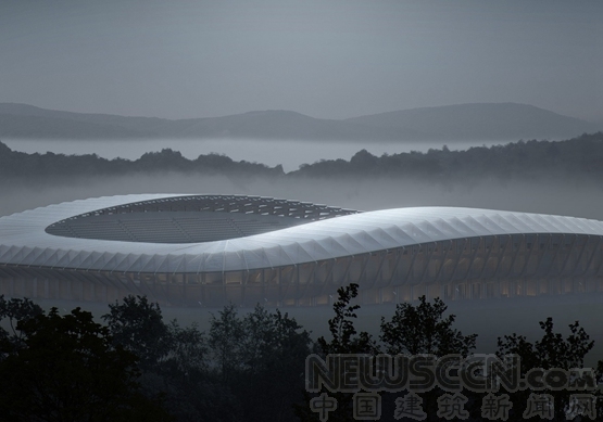 这个体育场将是一个波浪形的、由木材构成的“碗”。它的每个座位的位置,经过计算,将给观众提供最好的视界。