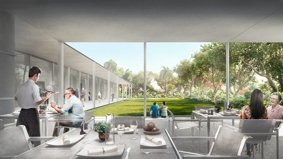 这个花园,将取代在博物馆南侧的沥青停车场,将种植272棵树及灌木,营造一个公共空间,遮挡佛罗里达州刺目的阳光。