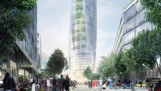 美国的SOM建筑事务所在巴黎提出一座180米高的摩天大楼的设计方案,设计为零能耗,可以通过塞纳河上的一座花园桥到达。