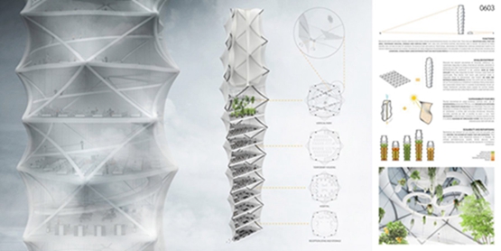 5、来自智利的克劳迪奥-C-阿拉亚-阿里亚斯获得了第三名,他们的想法是建造一个能抵御森林火灾的模块化摩天大楼。