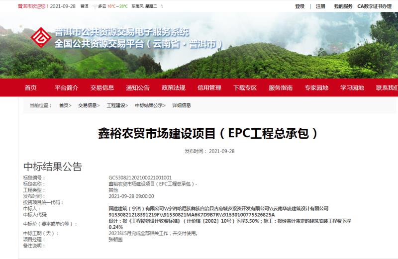 2021年9月28日,经过公司各级领导及投标人员的努力,我公司在鑫裕农贸市场建设项目(EPC工程总承包)招标中一举中标。